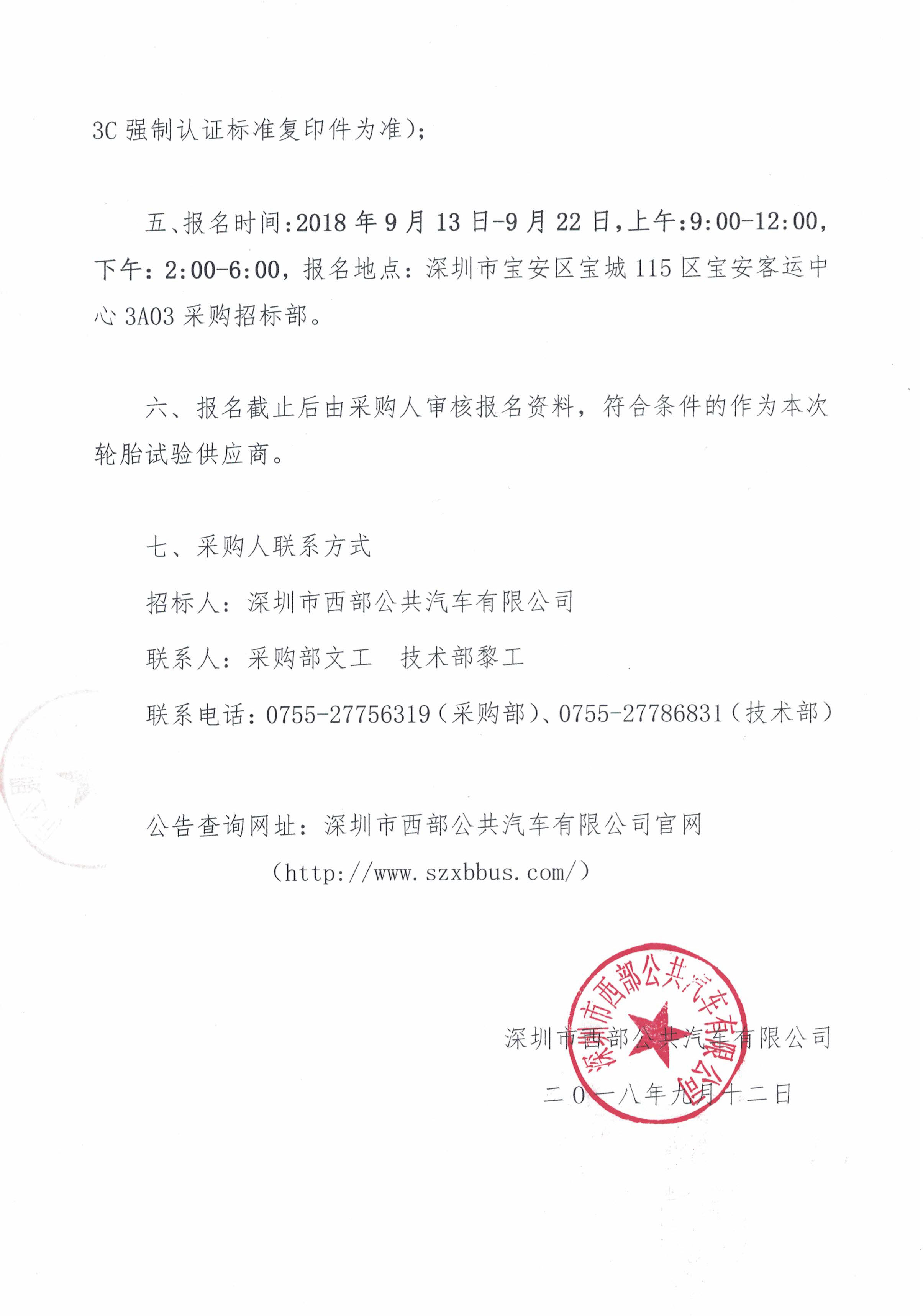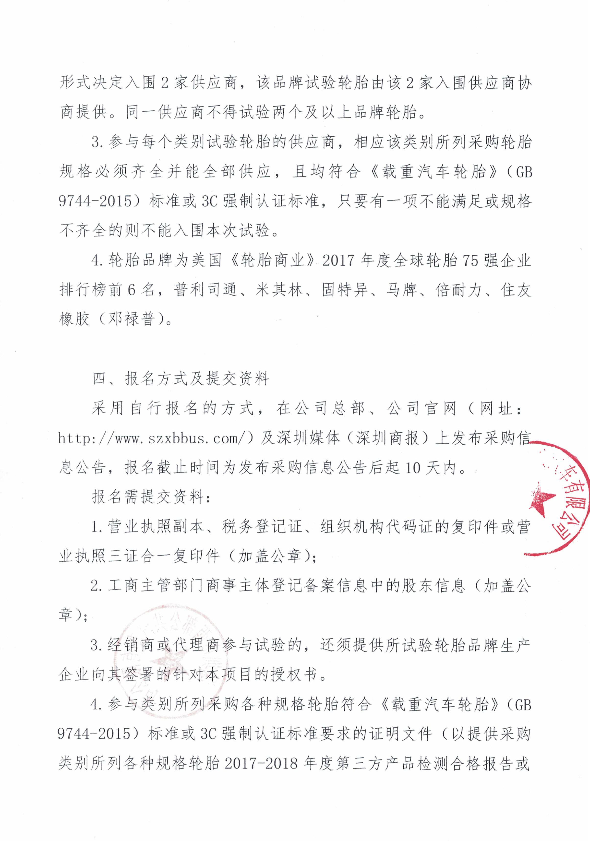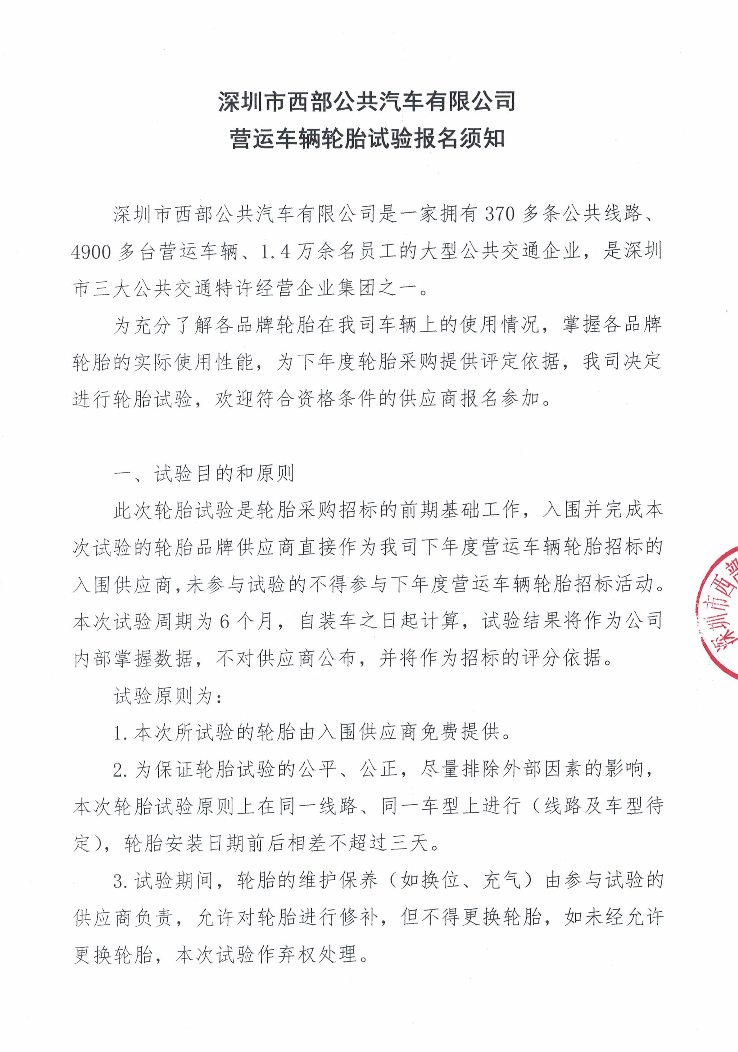 深圳市西部公共汽车有限公司营运车辆轮胎试验报名须知
