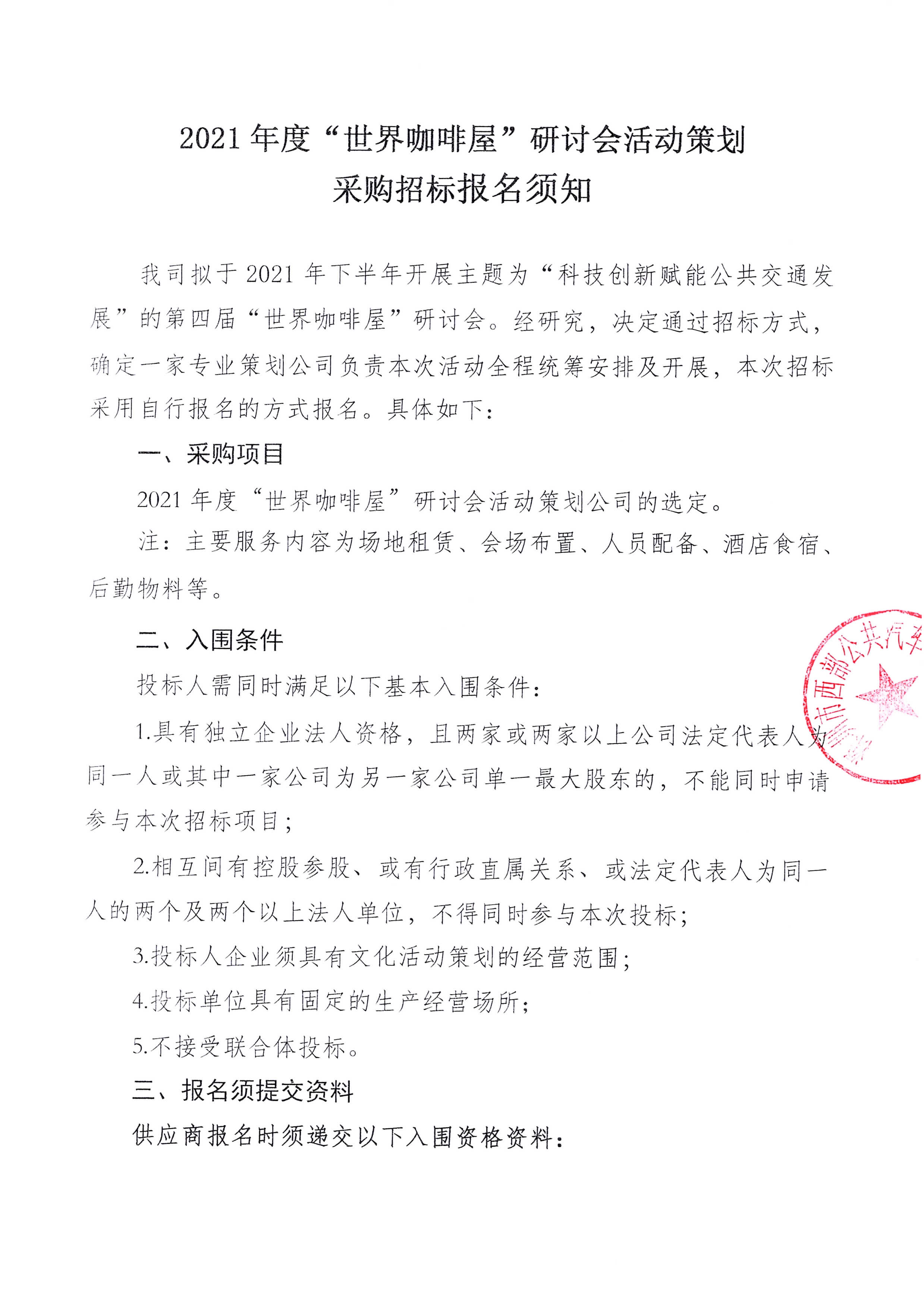 2021年度“世界咖啡屋”研讨活动策划采购招标报名须知