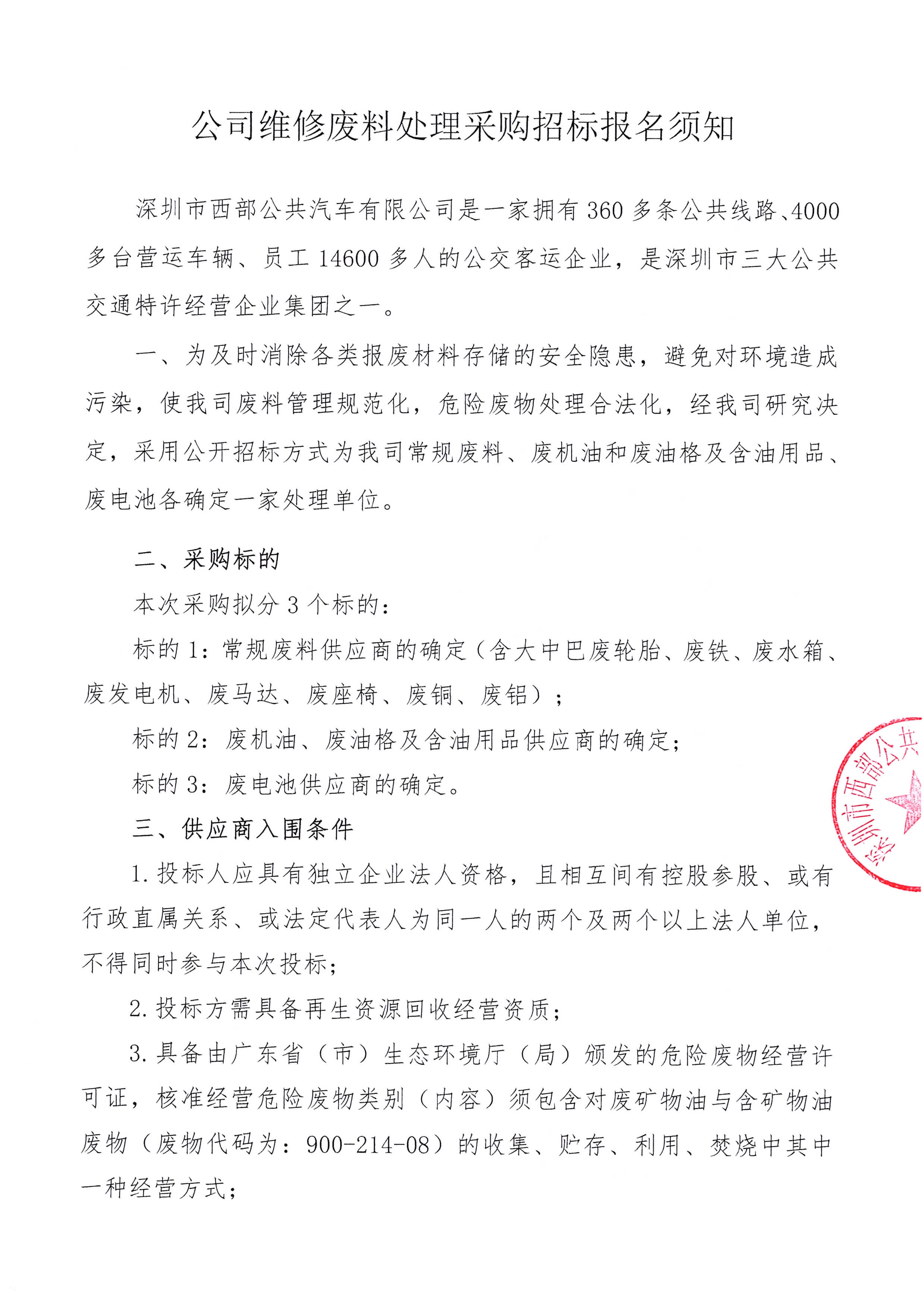 公司维修废料处理采购招标报名须知