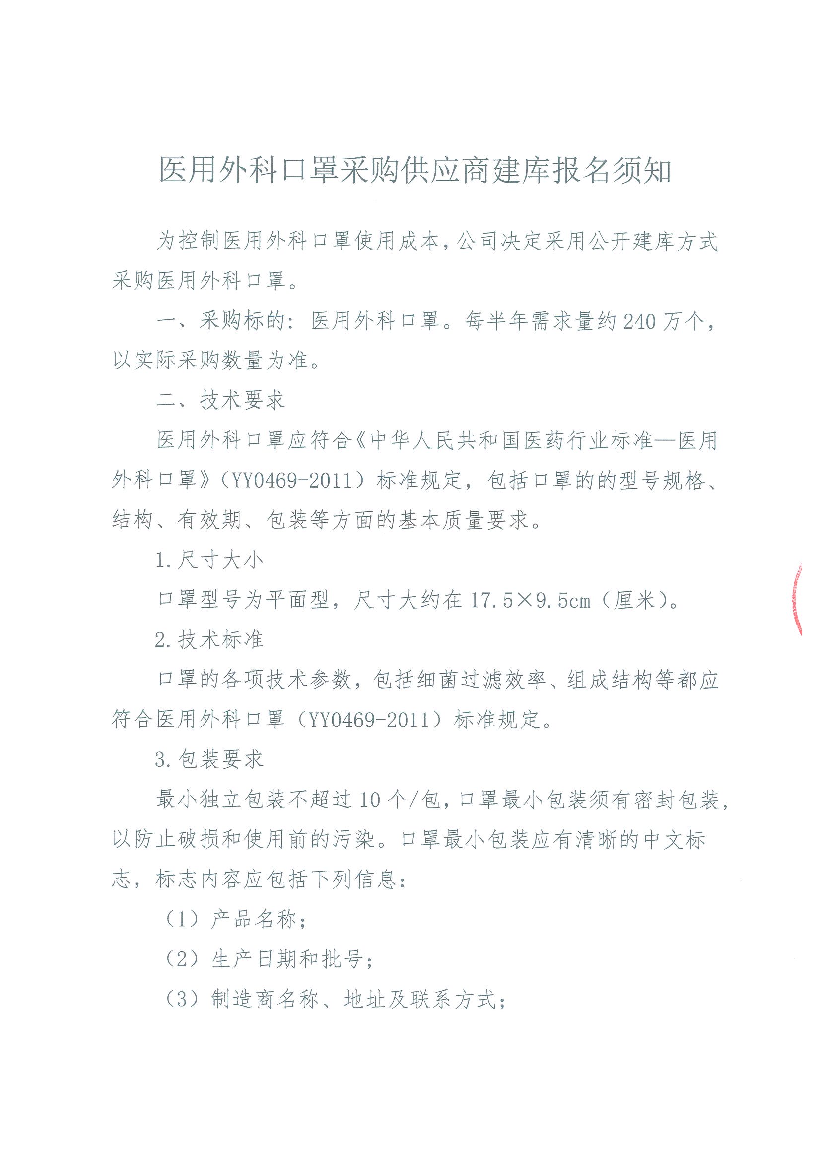 医用外科口罩采购供应商建库报名须知