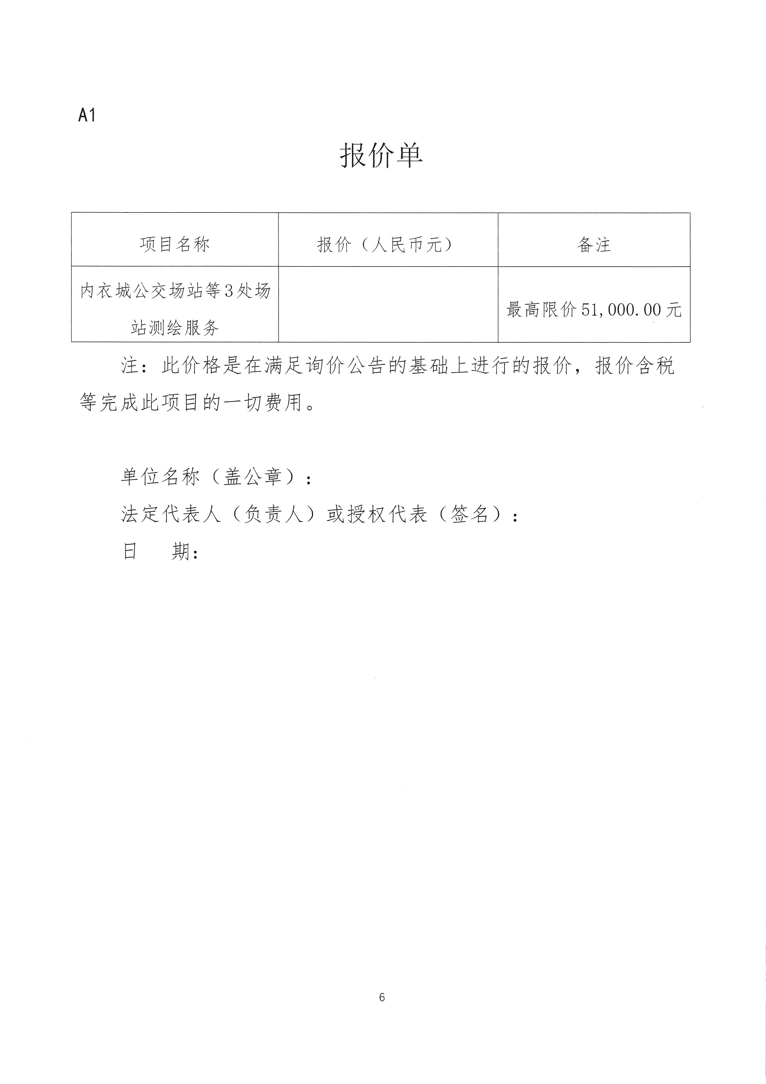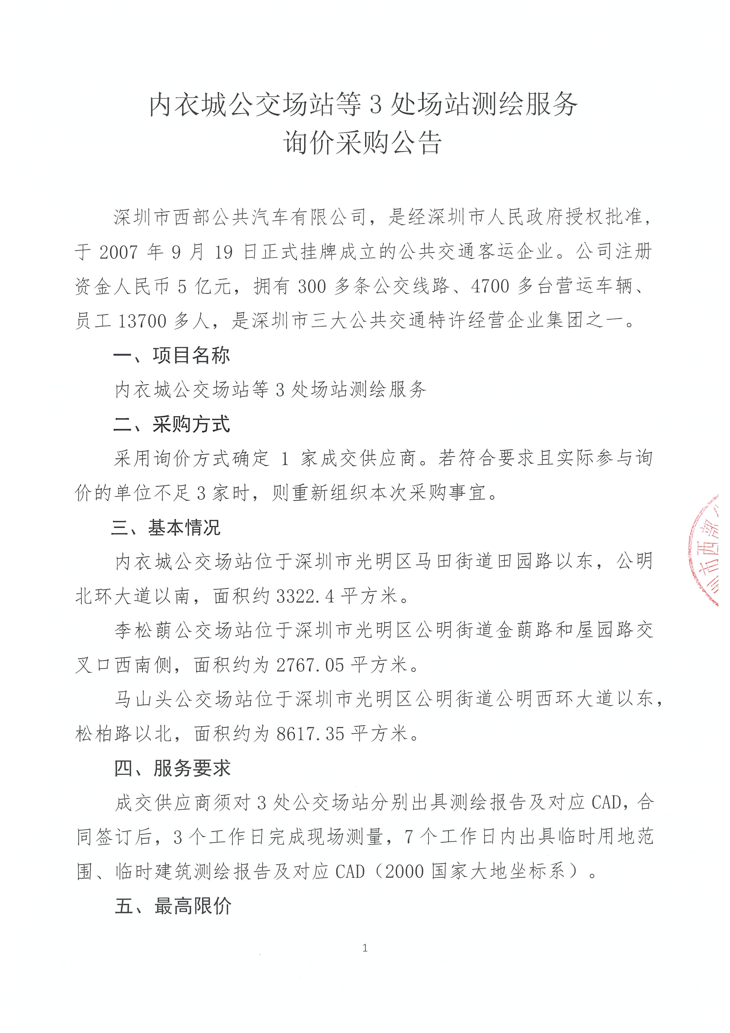 内衣城公交场站等3处场站测绘服务询价采购公告