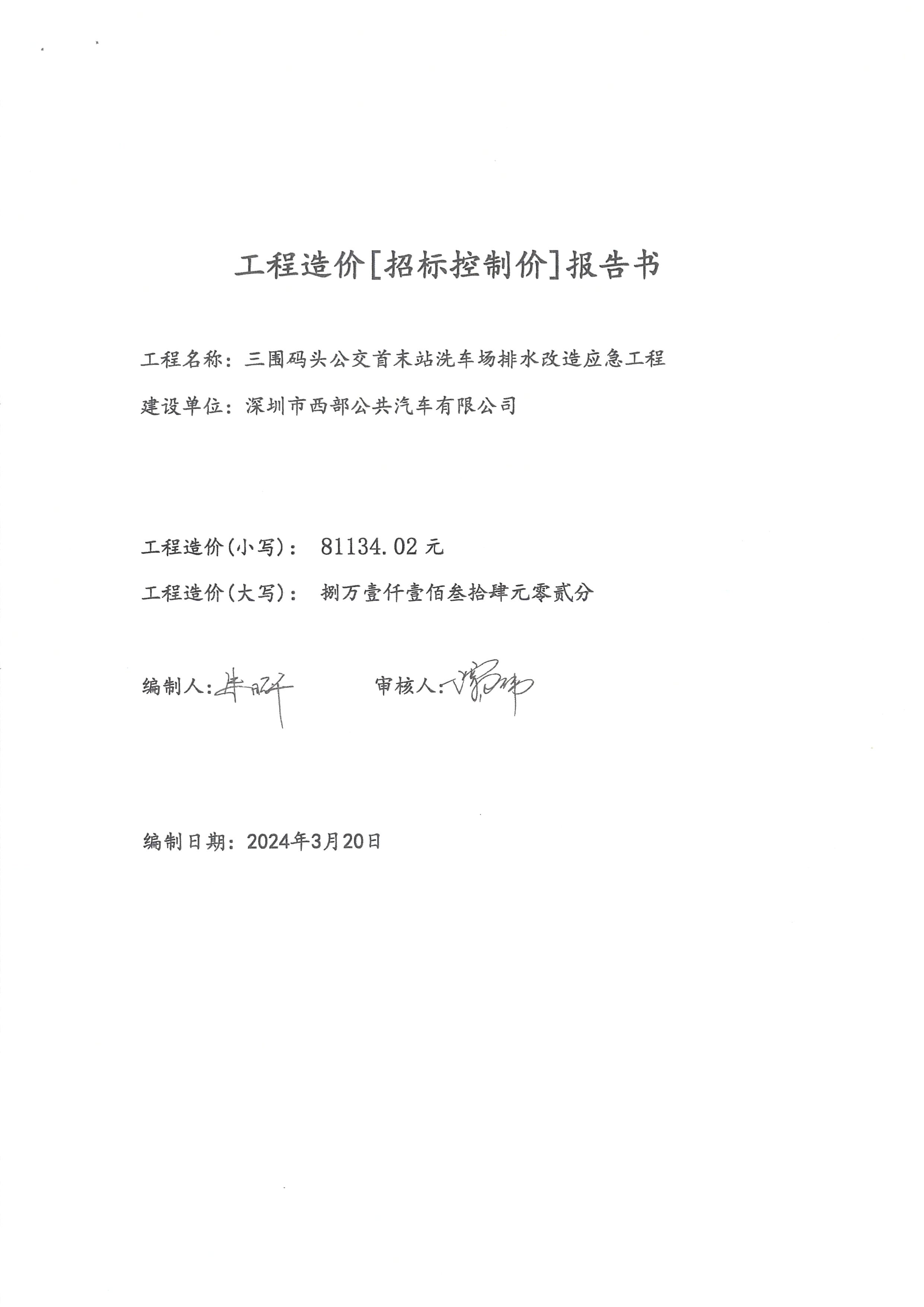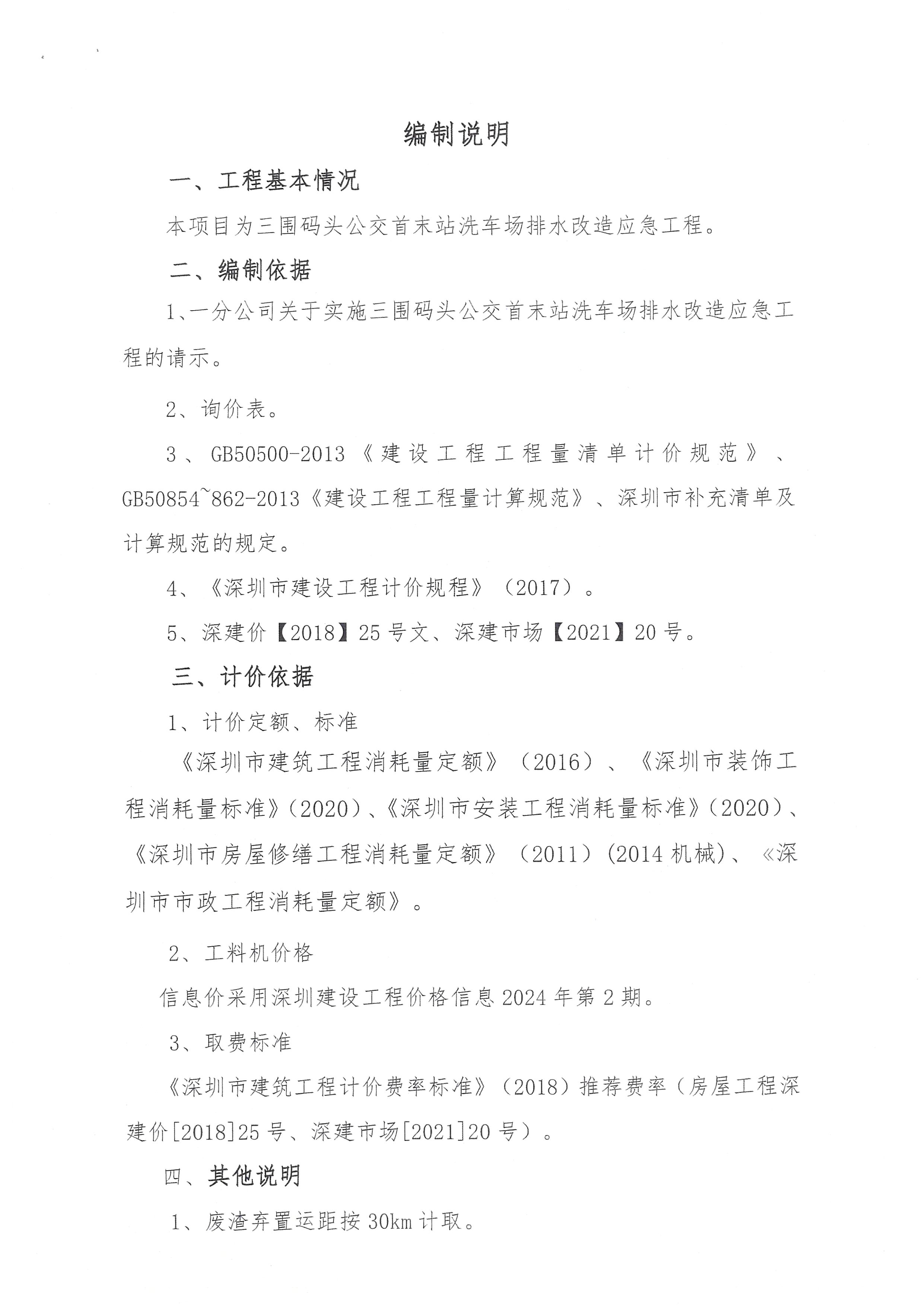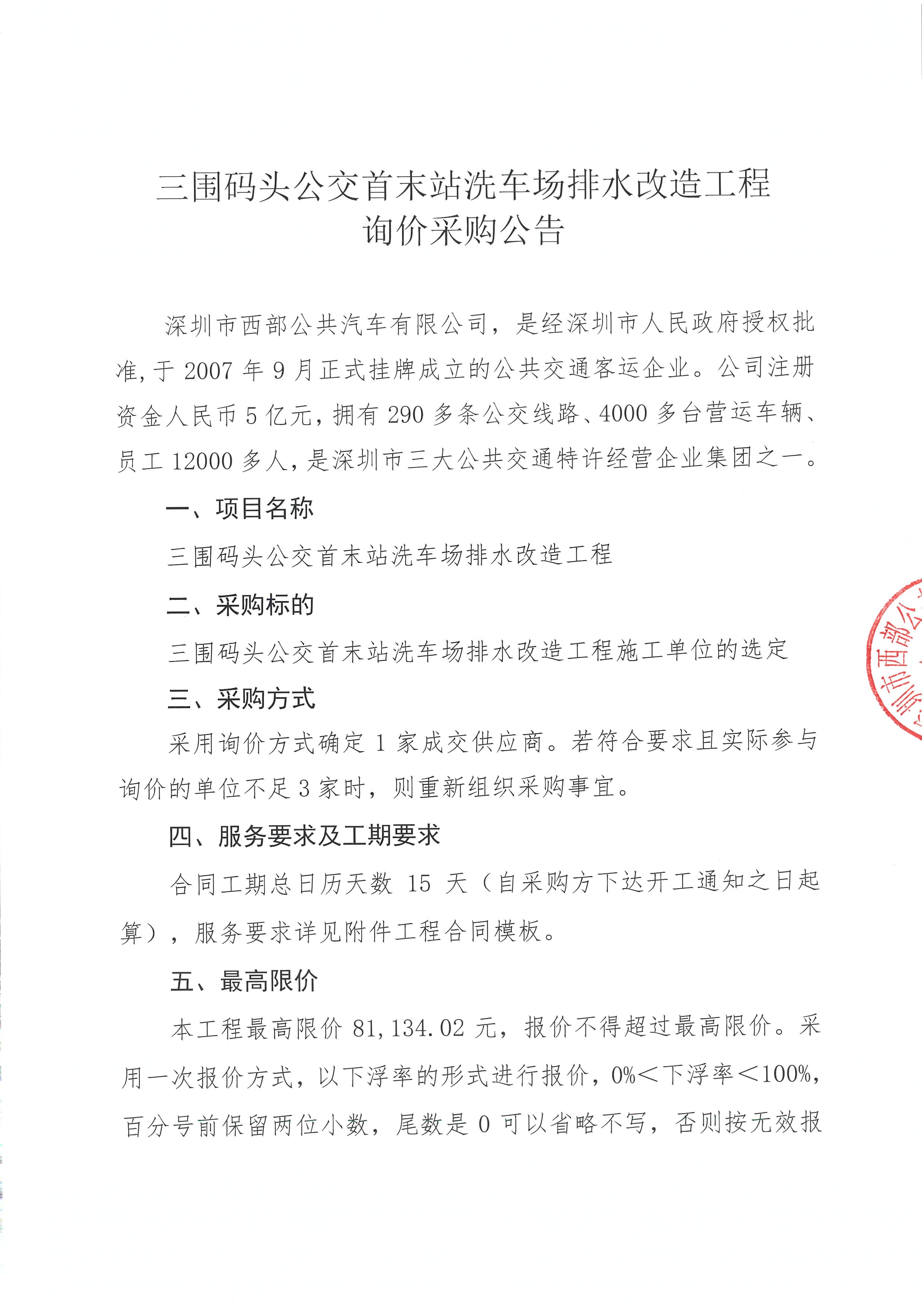 三围码头公交首末站洗车场排水改造工程询价采购公告