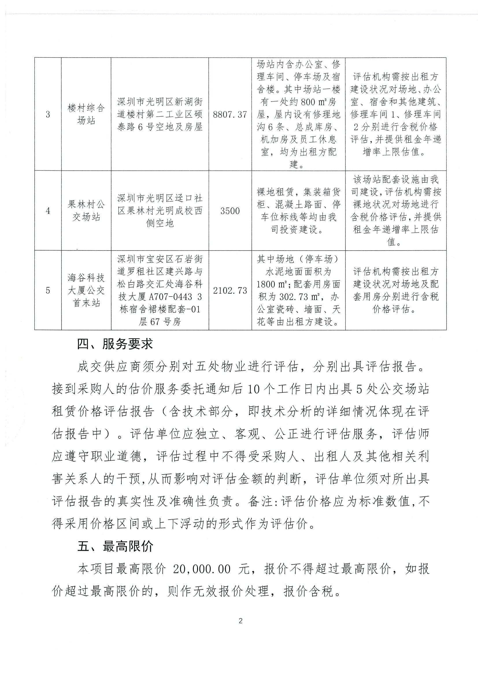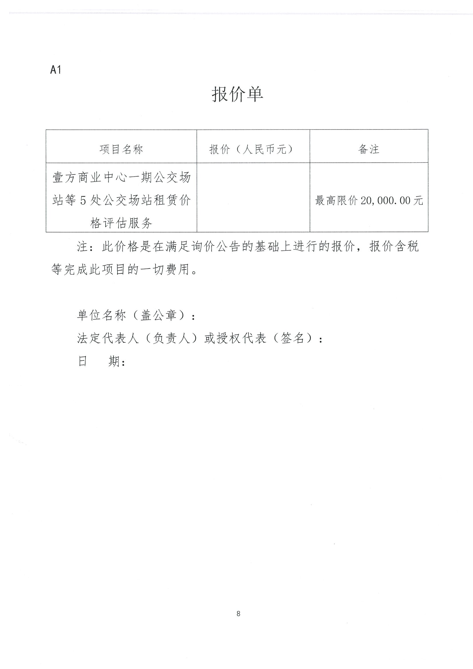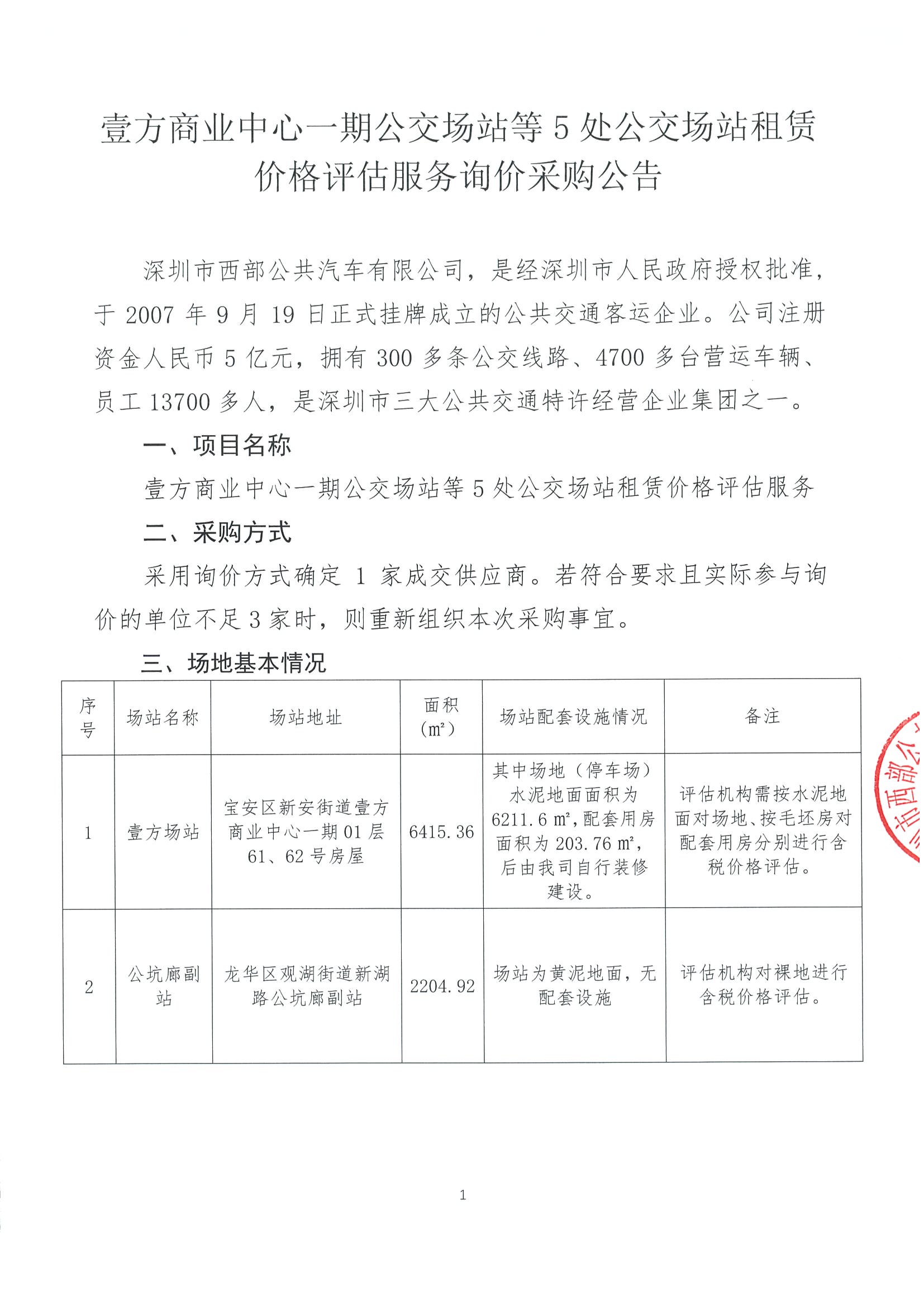 壹方商业中心一期场站等5处场站租赁价格评估服务采购公告