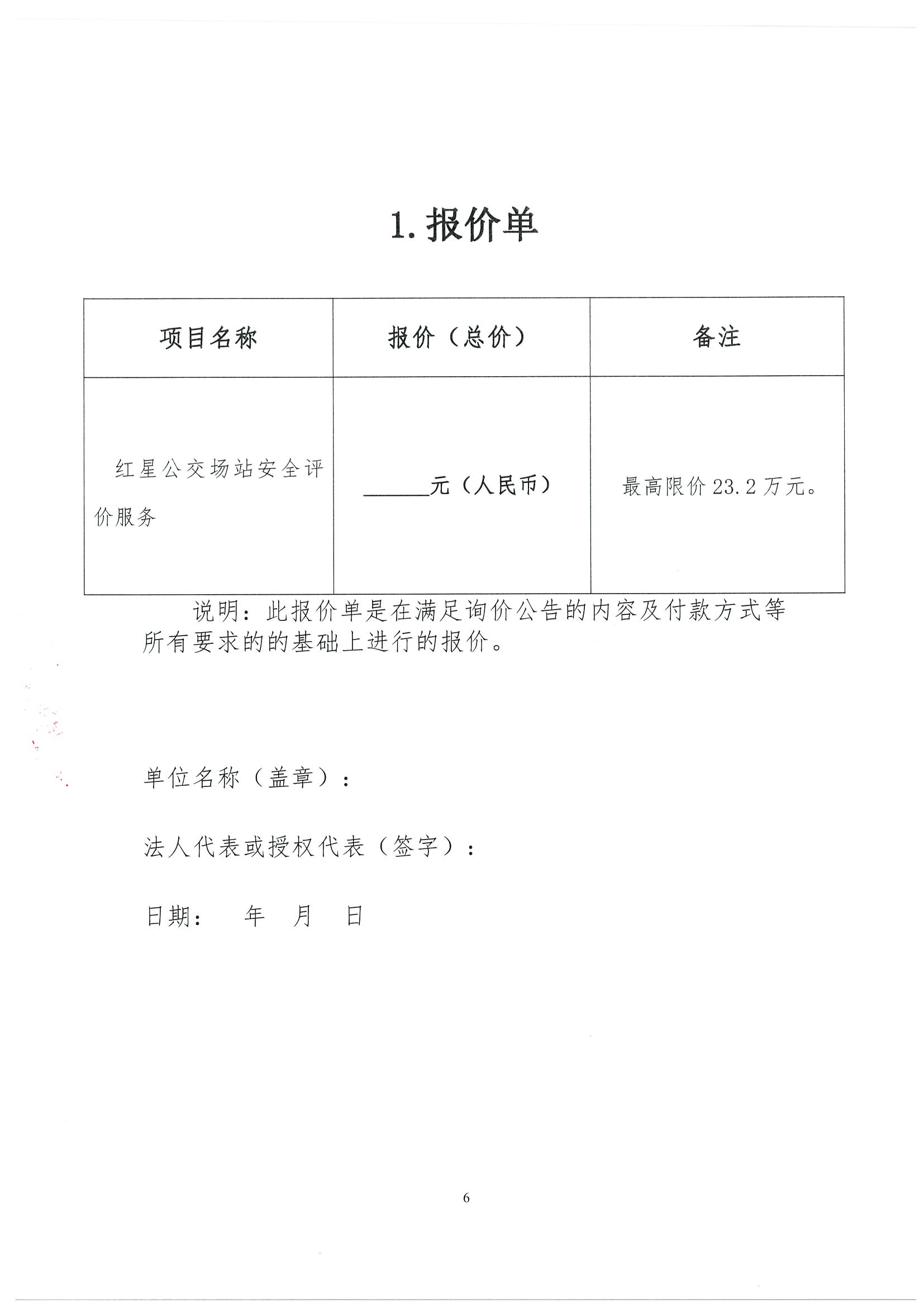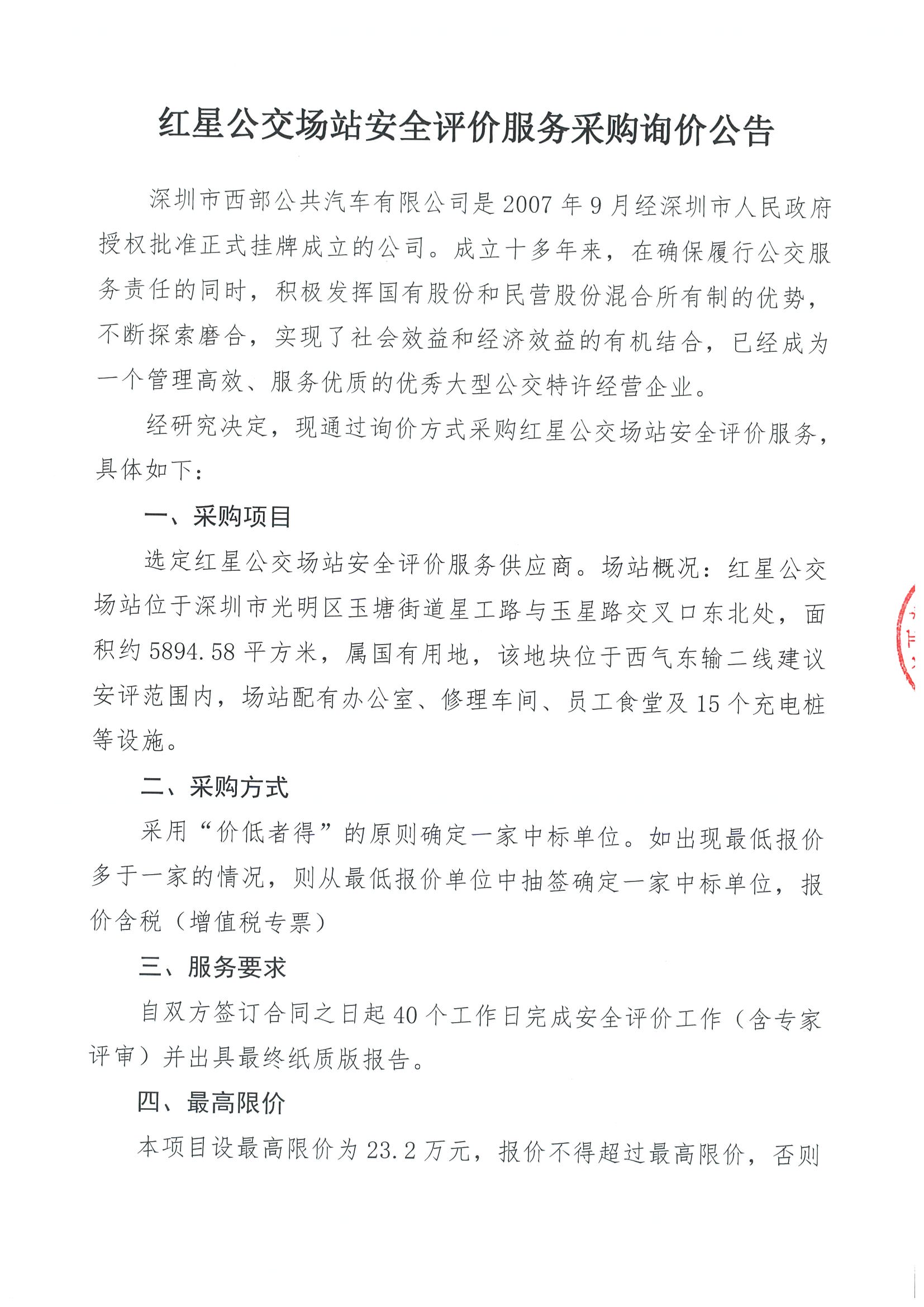 红星公交场站安全评价服务采购询价公告